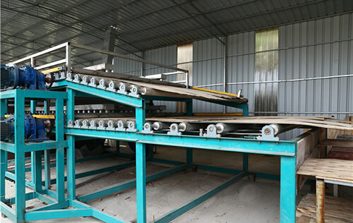 三層單板幹燥機是單板及膠板生產過程中的主要設備之一,單板幹燥質量直接影響貼麵板、膠合板產品質量,原理是單板在上下兩片盤管的夾持下預熱幹燥,盤管通過蒸汽或者導熱油升溫把溫度傳遞到單板,高溫盤管與濕單板直接接觸、熱效率高、熱損小,單板受熱均勻,木材收縮的良性物理過程中蒸發,因此單板烘幹後含水率均勻,木材色澤好、內外一致,不會產生開裂、彎曲、變形。適合烘幹楊木皮,鬆木皮,桉木皮等,利用熱傳導直接加熱單板,幹燥質量和幹燥效率得到很大提高。
