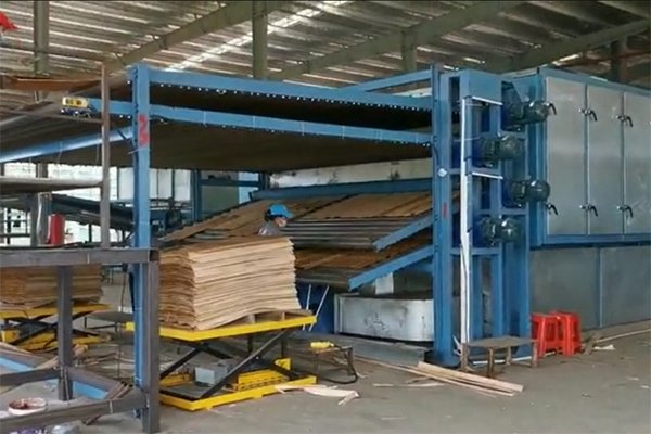 皮子秋葵视频污在线观看設備是單板和膠合板生產過程中的首要設備之一。單板枯燥質量的好壞直接影響到單板和膠合板產品的質量,也直接影響到輥壓式接連單板幹燥機的設計。其首要作業原理是在上下鋼帶夾緊的情況下,用預熱管預熱單板,鋼帶與單板的溫度趨於一致。